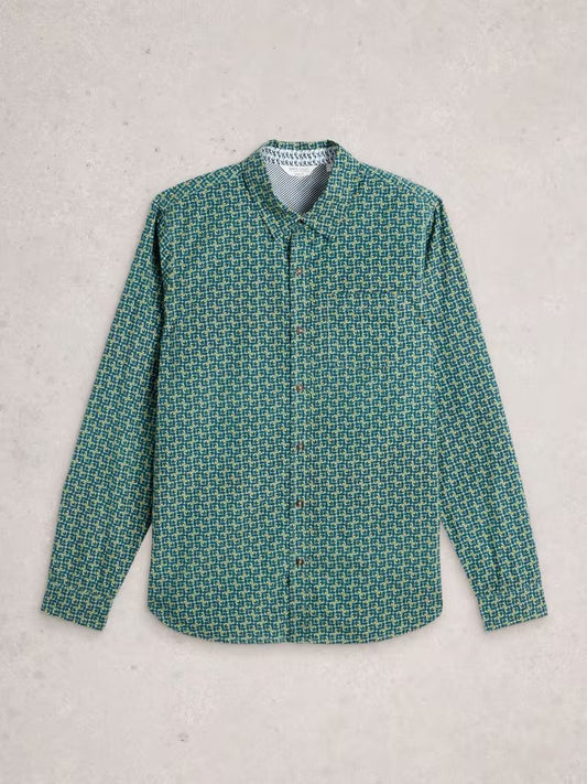White Stuff Finsbury Retro Print Shirt Teal Print