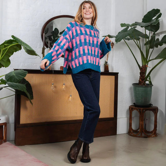 Cara & The Sky Charlotte Geometric Pattern Wide Sleeve Knit Jumper Teal