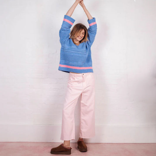 Cara & The Sky Judith Pointelle Stitch V Neck Jumper Blue