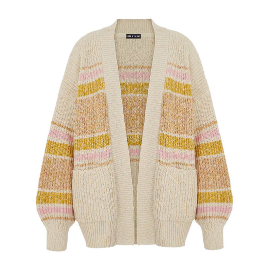 Cara & The Sky Dani Recycled Cotton Blend Chunky Balloon Sleeve Stripe Cardigan White