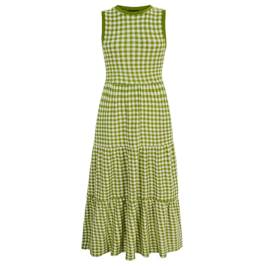 Cara & The Sky Paula Gingham Cotton Knitted Midi Dress Green