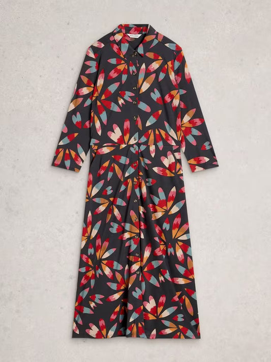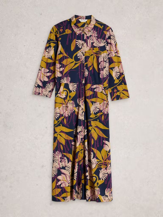 White Stuff Rua Jersey Collared Shirt Dress Navy Multi