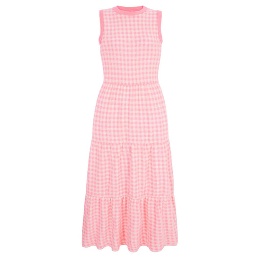Cara & The Sky Paula Gingham Cotton Knitted Midi Dress Soft Pink