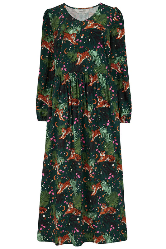 Sugarhill Brighton Sidney Midi Smock Dress Dark Green Tigers & Palms
