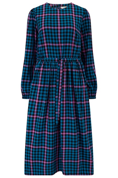 Sugarhill Brighton Yasmin Midi Smock Dress Black/Teal Twilight Gingham