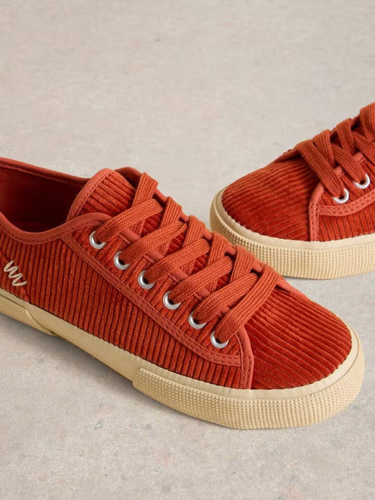 White Stuff Pippa Cord Lace Up Trainer Dark Orange