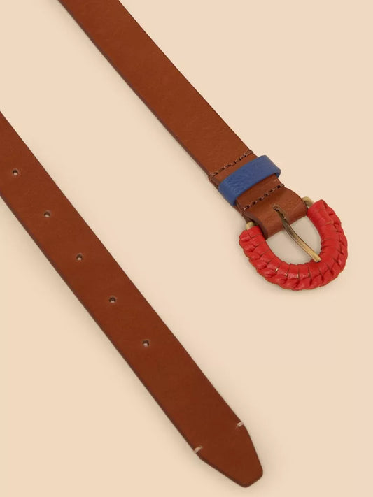 White Stuff Woven Leather Buckle Belt Mid Tan