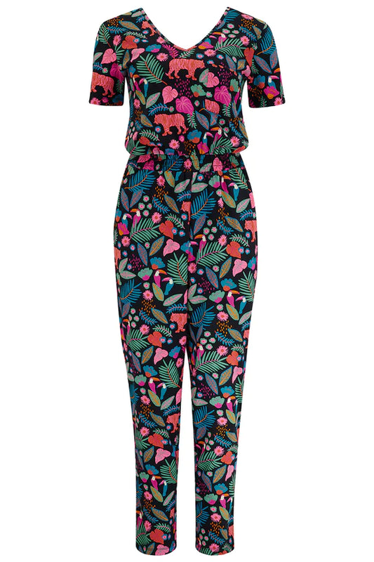 Sugarhill Brighton Bianca Jersey Jumpsuit Black Tigers & Toucans