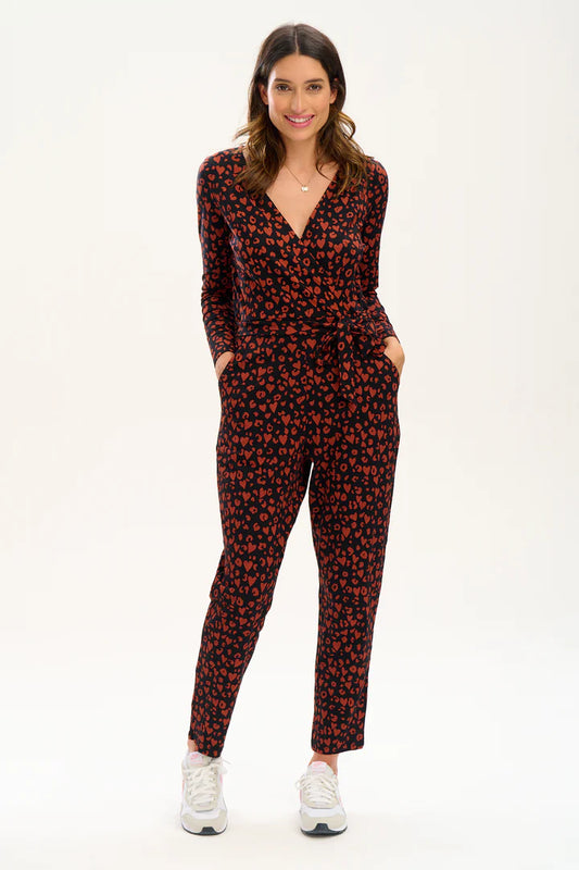 Sugarhill Brighton Xena Jersey Jumpsuit Black/Rust Leopard Love
