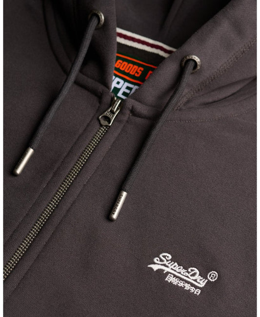 Superdry Essential Logo Half Brushed Zip Hoodie Carbon Black