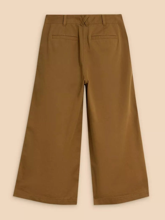 White Stuff Samira Wide Leg Crop Trousers Khaki Green