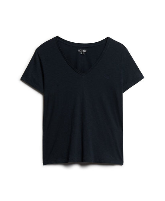 Superdry Studio Slub Embroidered V-Neck T-Shirt Eclipse Navy