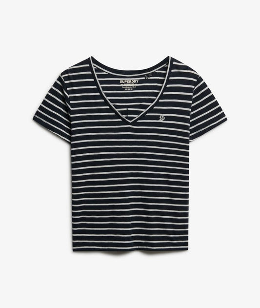 Superdry Organic Cotton Studios Pocket V-Neck Tee Navy Breton - Size: 8