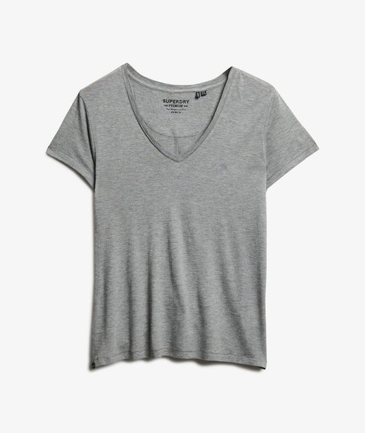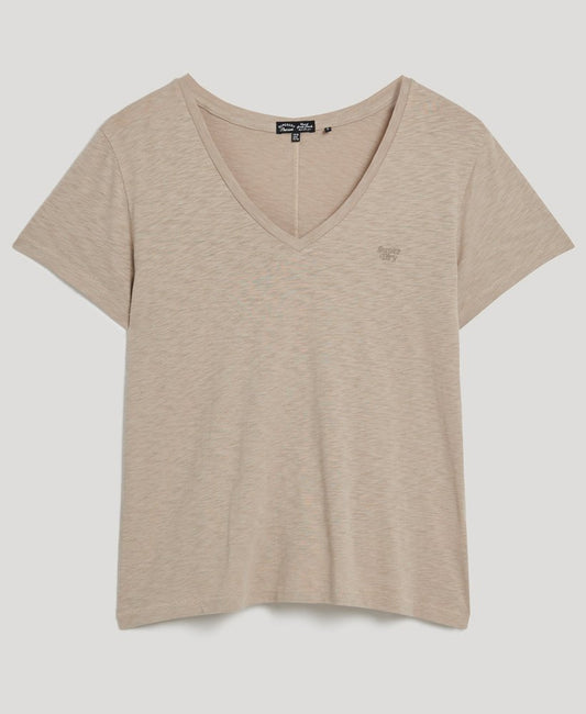Superdry Studio Slub Embroidered V-Neck T-Shirt String Brown