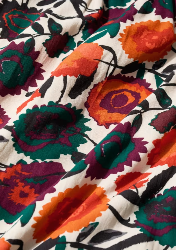 A new wardrobe favourite for everyday elegance, crafted from a soft drapey fabric. Seams under the bust and gentle shaping through the waist create a flattering outline, enhanced by the full above-ankle skirt. The neat V-neckline and slim three-quarter sleeves keep the styling simple, letting the beautiful print take centre stage. Lined with lightweight cotton voile for comfort and a clean finish.