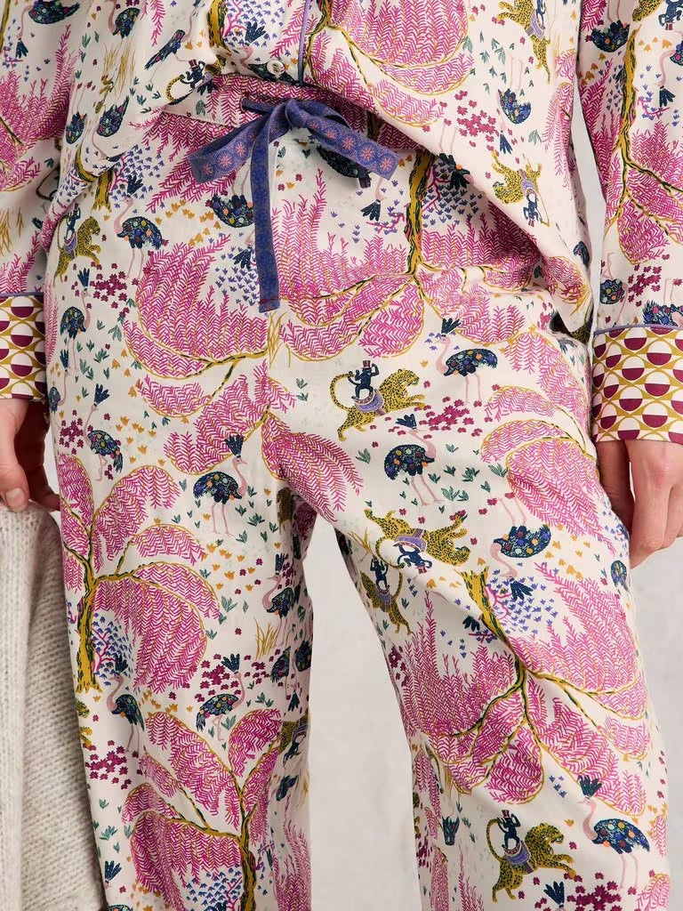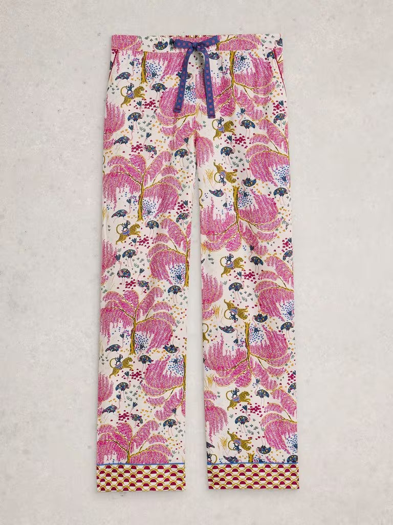 Printed pyjama trousers with contrast pattern cuffs, signature embroidery and a super soft finish. They’ve got pockets too. For hiding midnight snacks and so forth.